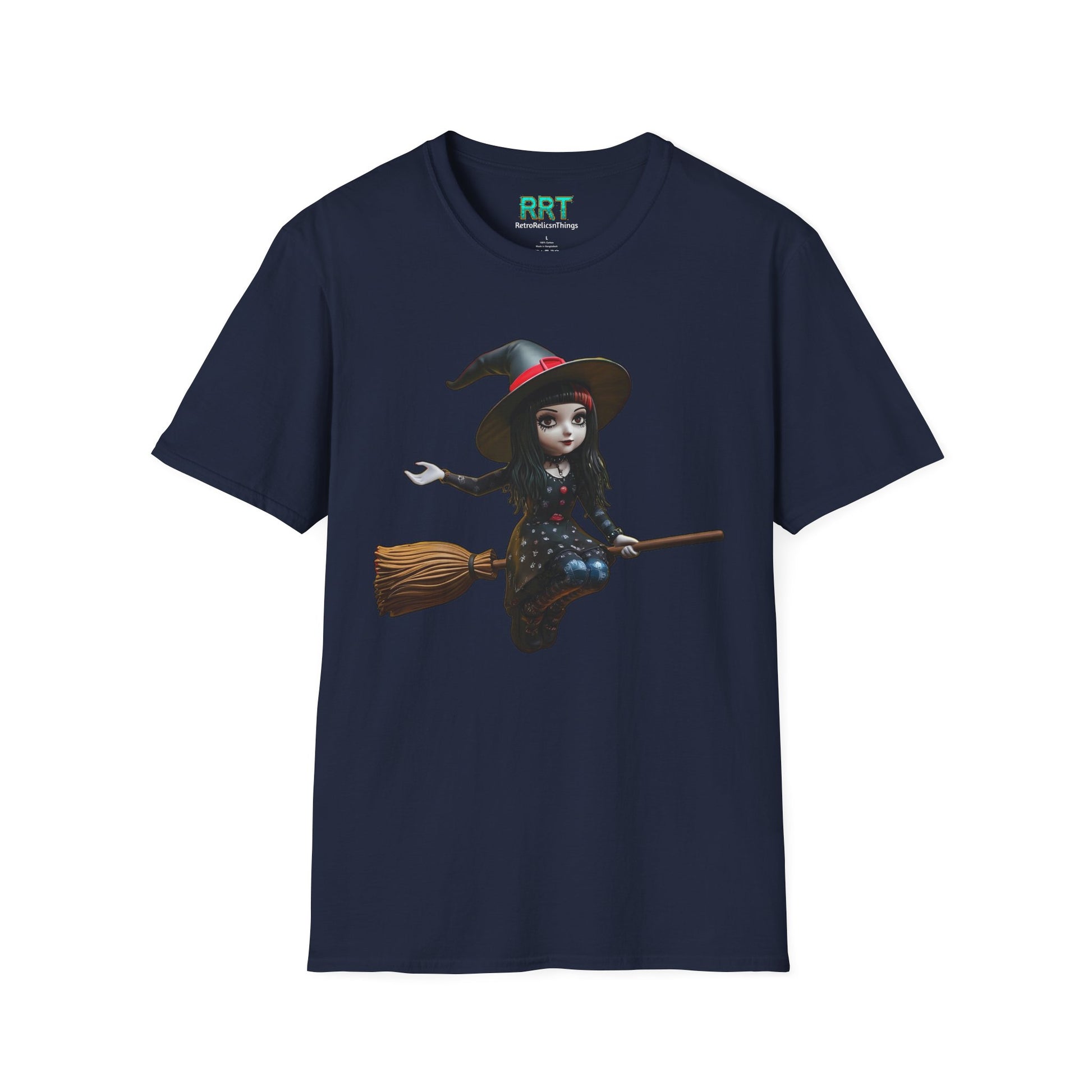 Meet the Hexbound Flyer, a spell-slinging witch with a red streak in her hair and magic in her stride. This Halloween graphic tee features a whimsical witch riding her broomstick through the night, dressed in a gothic black outfit with red accents and striped stockings. Her confident pose and expressive design make this the perfect shirt for fans of witchcore fashion, spooky season style, and fantasy art. Whether you are casting spells, trick or treating, or just vibing with fall energy, this gothic fall shirt brings enchantment to your wardrobe. Great gift for Halloween lovers, fantasy fans, and anyone who lives for witchy vibes and magical storytelling.