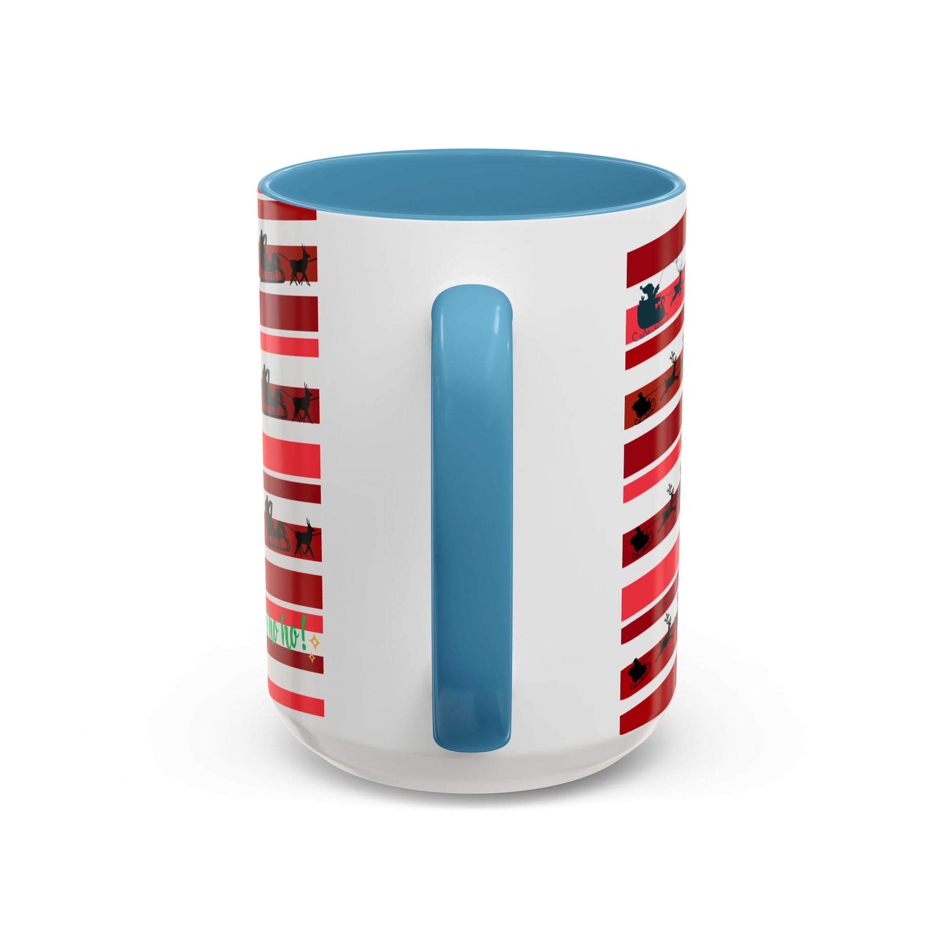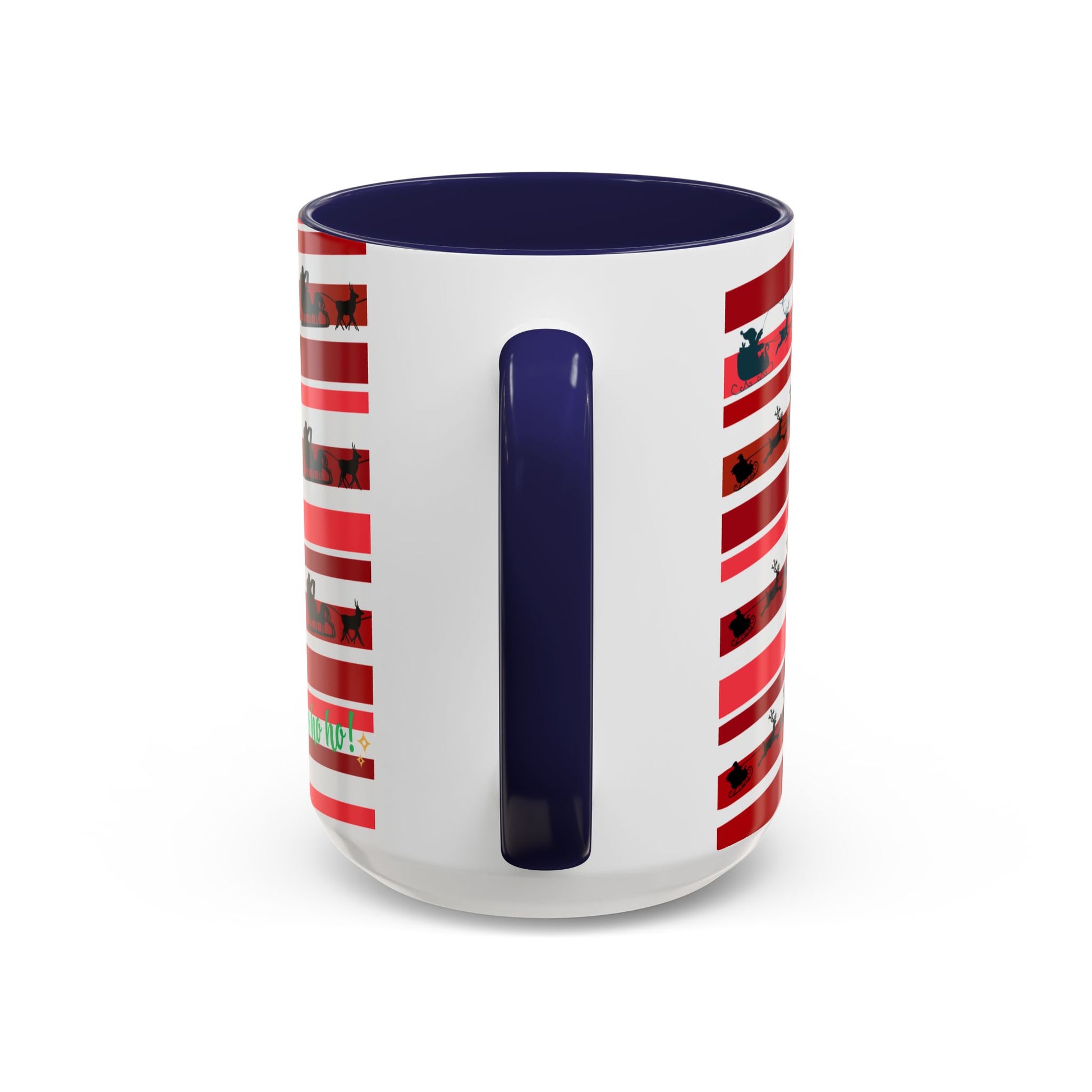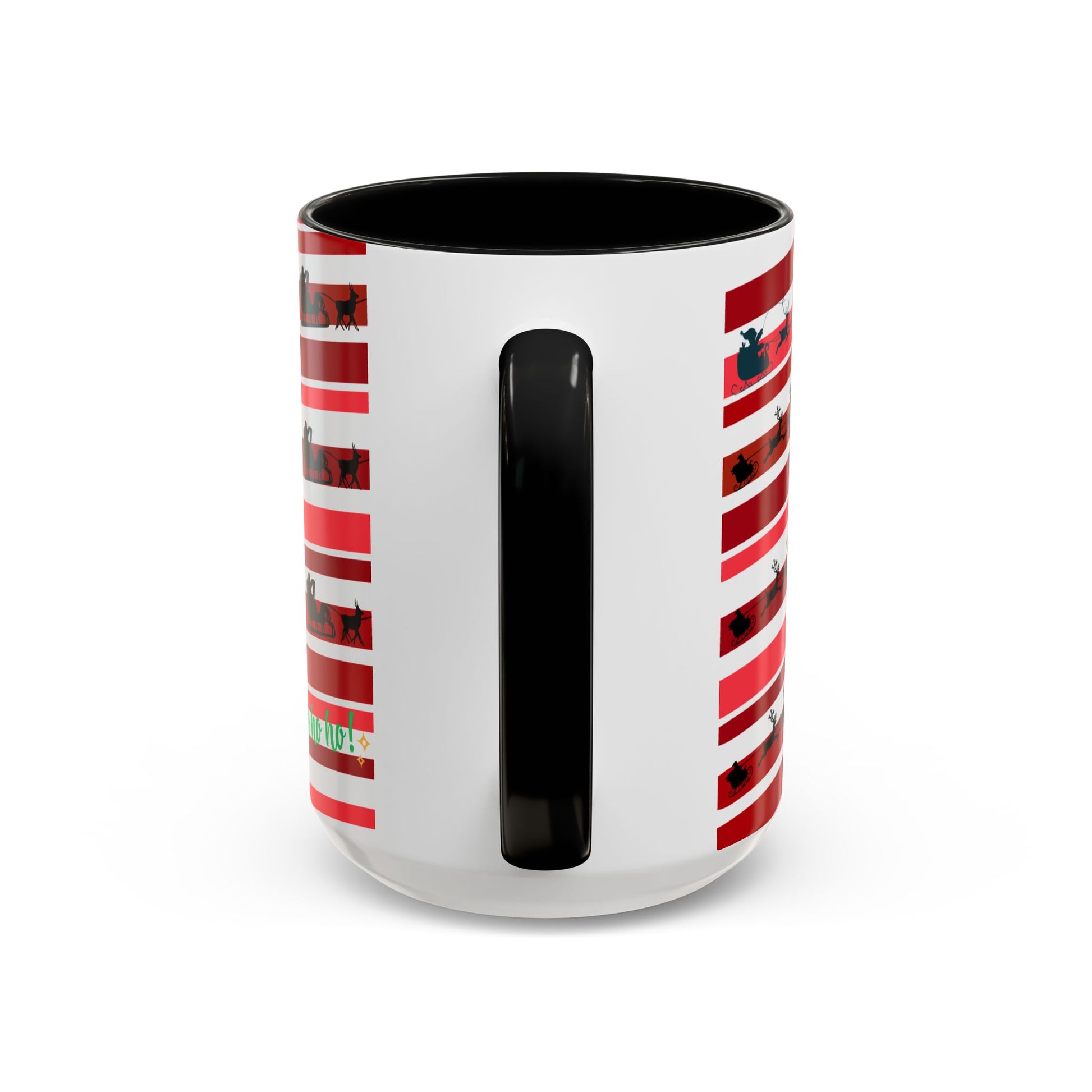 Ho Ho Ho Christmas Mug 15oz Festive Coffee Cup with Santa Sleigh and Reindeer Stripes