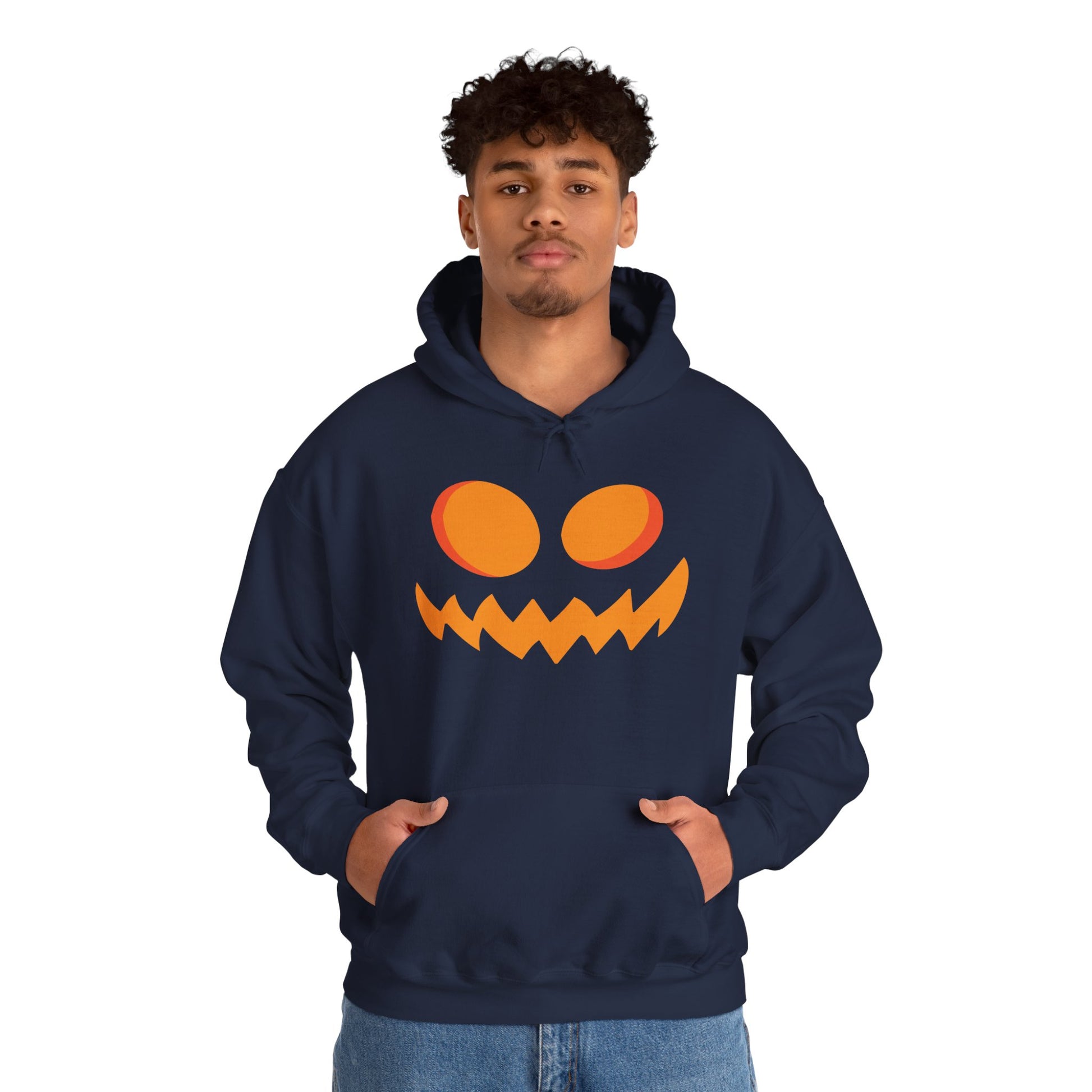 Jacks Haunted Grin Pumpkin Hoodie, Gildan 18500 Unisex Halloween Sweatshirt, Spooky Jack-O-Lantern Face Costume Pullover