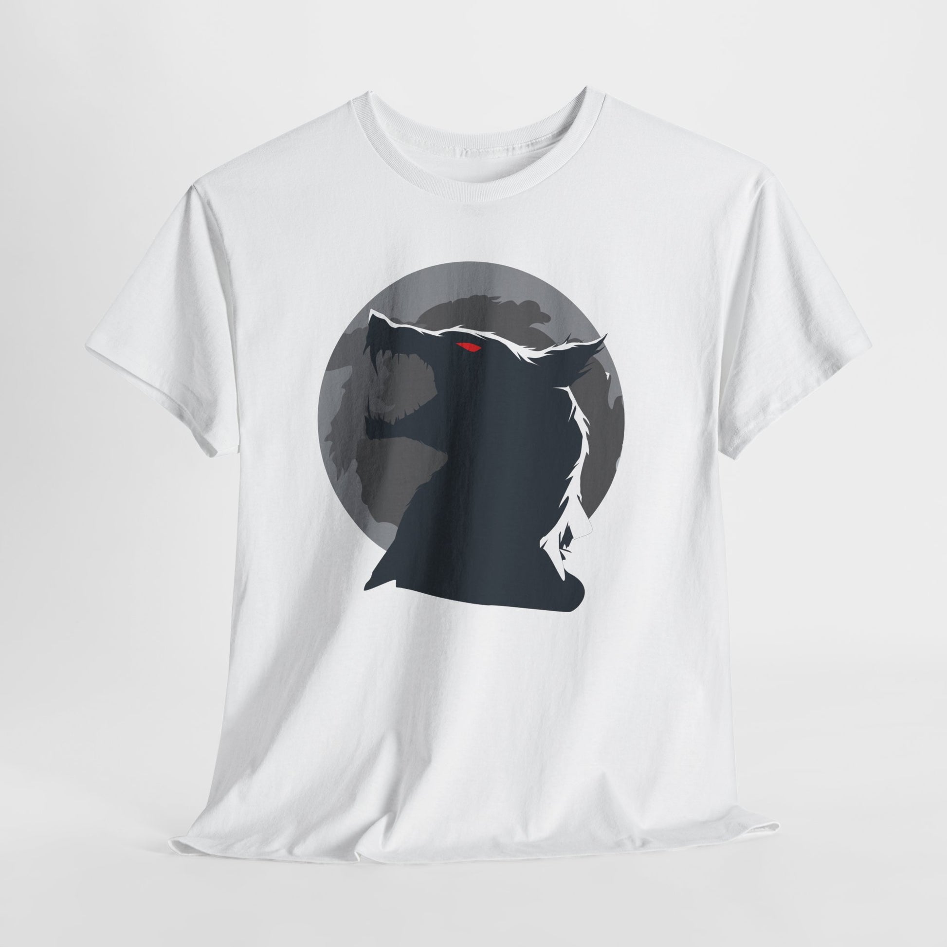 Moonlit Wolf Tee - Unisex Heavy Cotton Tee, Wolf Shirt, Gift for Animal Lovers, Outdoor Adventure Clothing, Moon-themed Apparel