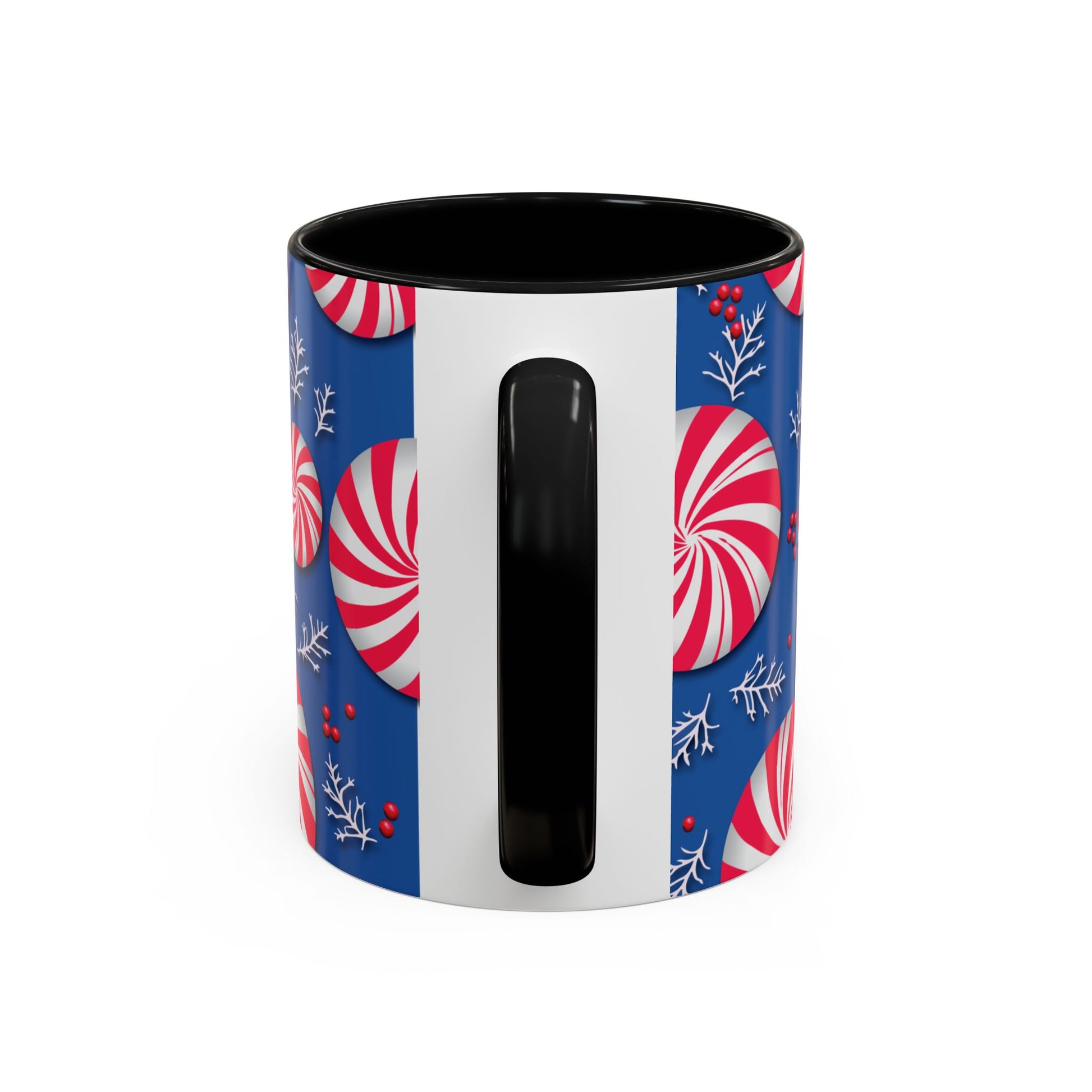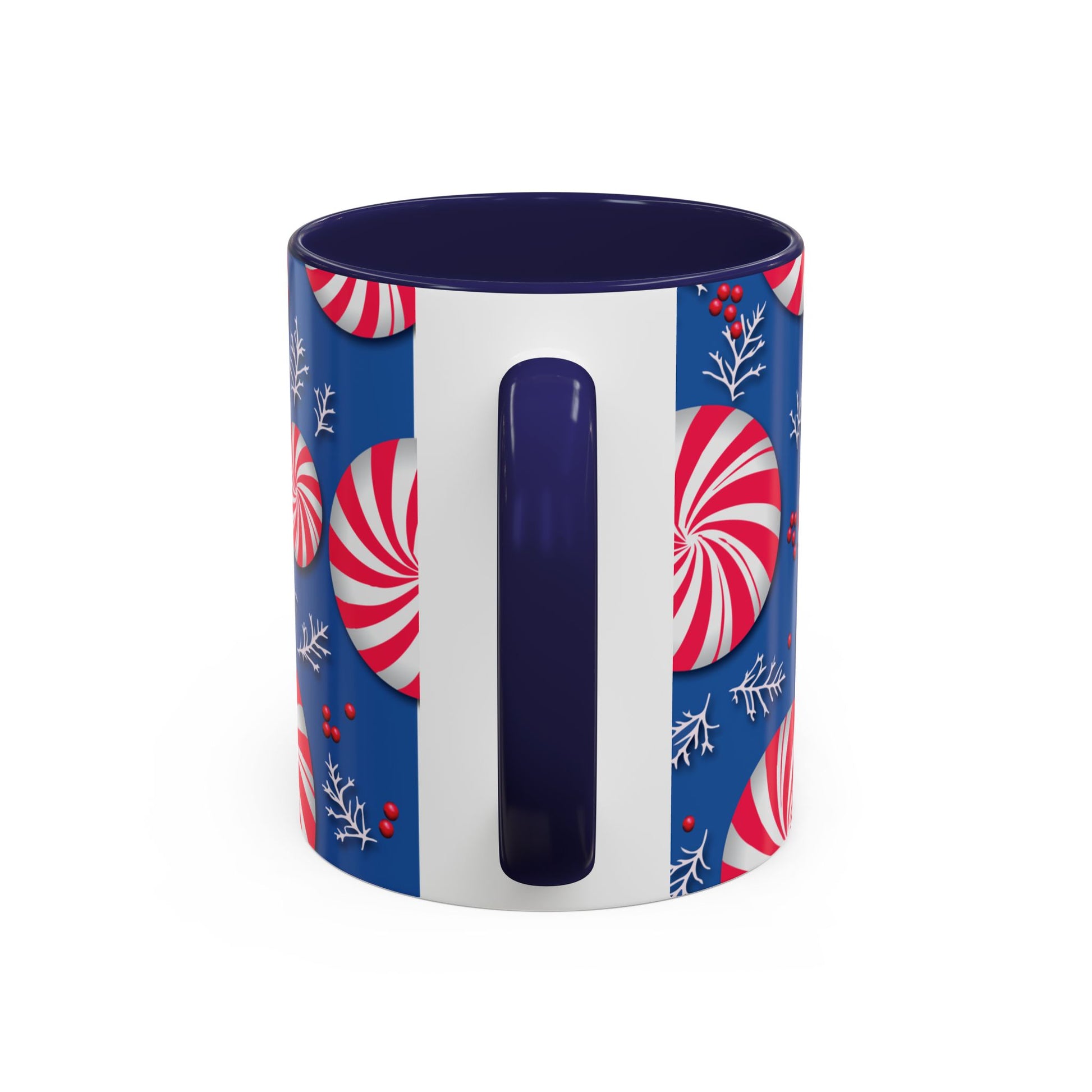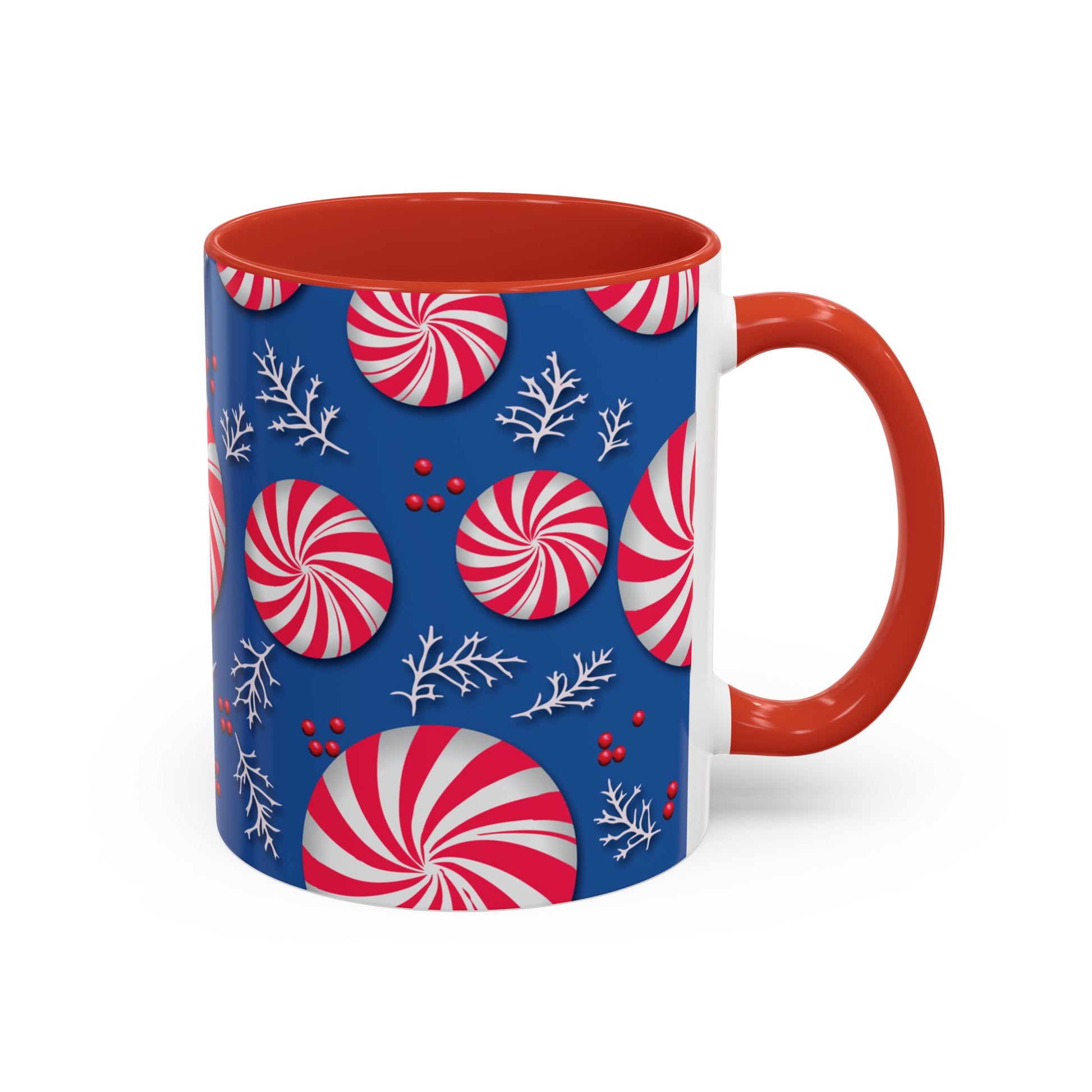 Start every morning with a sip of seasonal cheer in this festive ceramic mug. The vibrant red-and-white peppermint swirl pattern pops against a rich blue backdrop, while delicate white winter foliage and red berry accents complete the holiday look. At 11 oz, or 15 oz. it’s the perfect size for coffee, hot cocoa, or spiced lattes that warm you from the inside out.